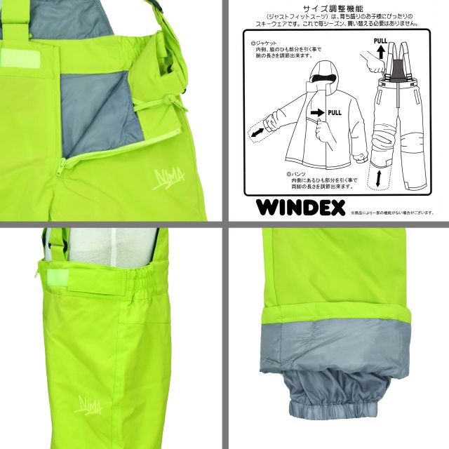 nima ニーマ 耐水圧10000mmサイズ調整可能スキーウェア上下セットです。